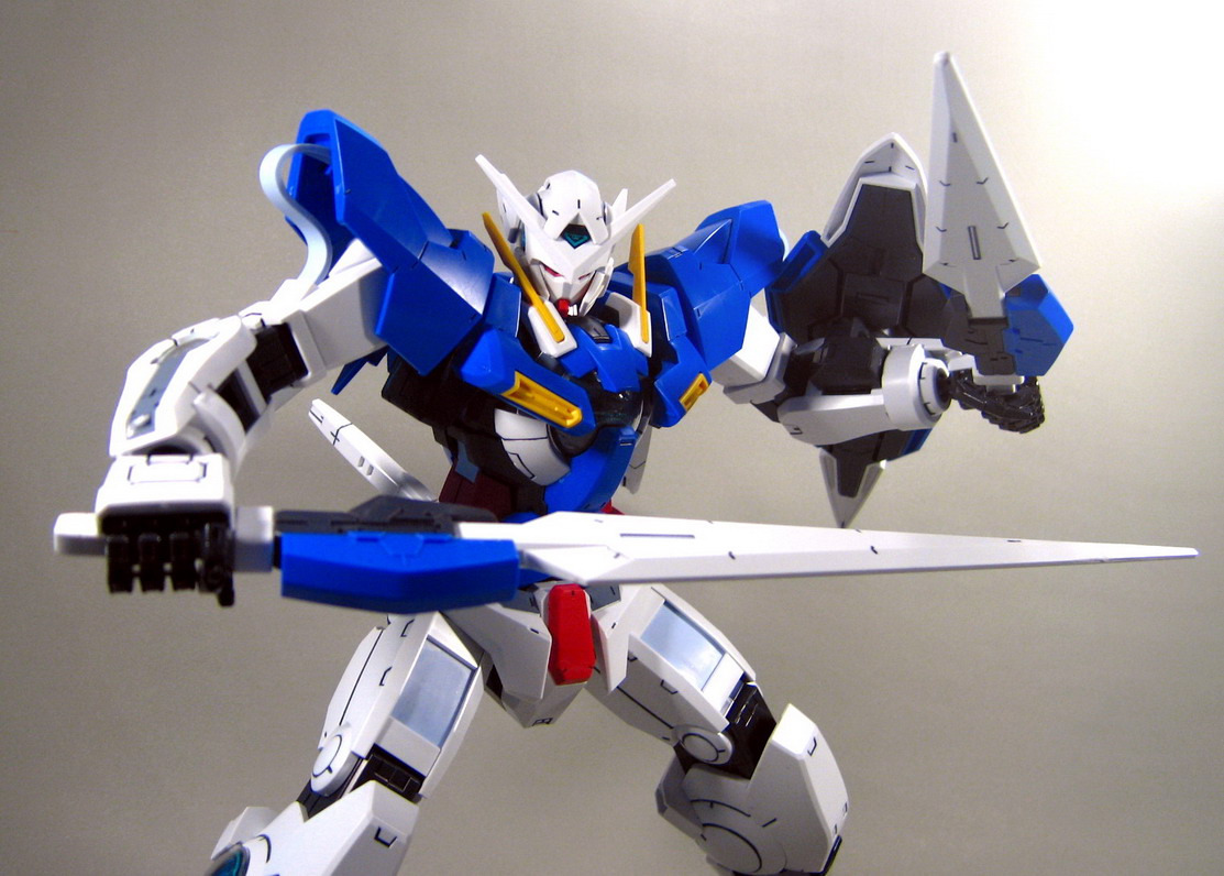 EXIA Gundam,以格鬥戰為主的機體,身上配備7把不同大小長短的劍,非常有型